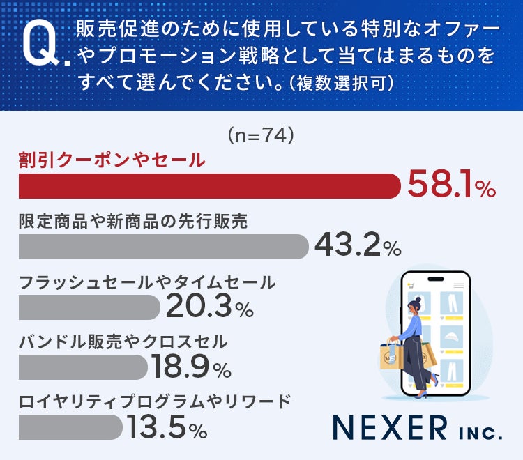 ■販売促進のためプロモーション戦略、58.1%が「割引クーポンやセール」と回答