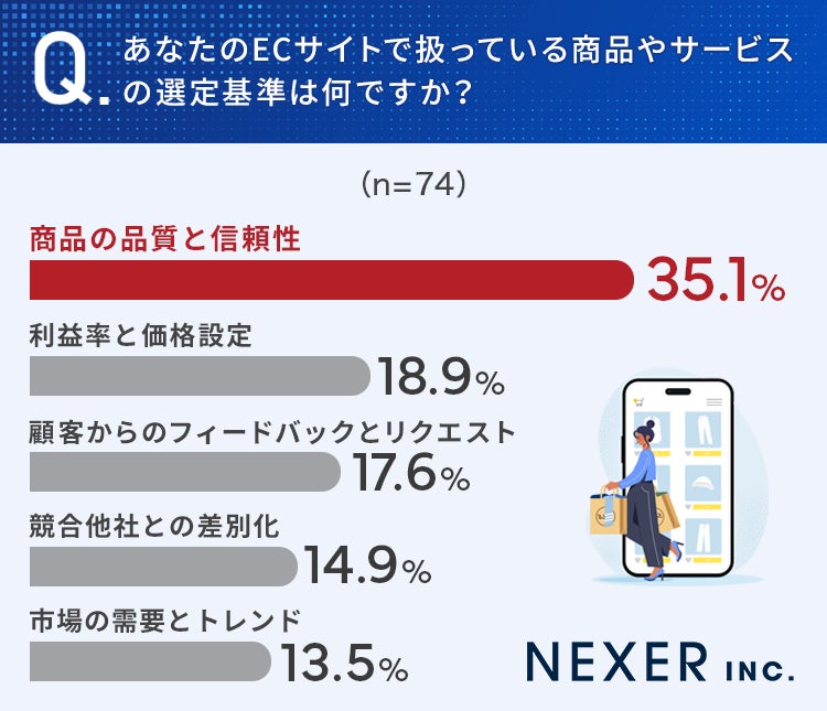 ■ECサイトで扱っている商品やサービスの選定基準、35.1%が「商品の品質と信頼性」