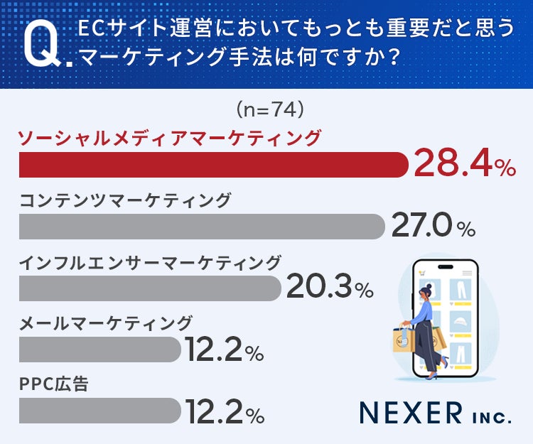 株式会社NEXERは、受注プロセス高速化クラウド「SmartDeal(スマートディール)」と共同で「ECサイト経営」に関するアンケートを実施し、結果をサイト内にて公開したので紹介します。