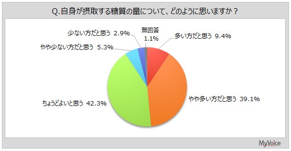 ■糖質の摂取量が多い方だと思う人は5割弱、ちょうどよいと思う人は4割強