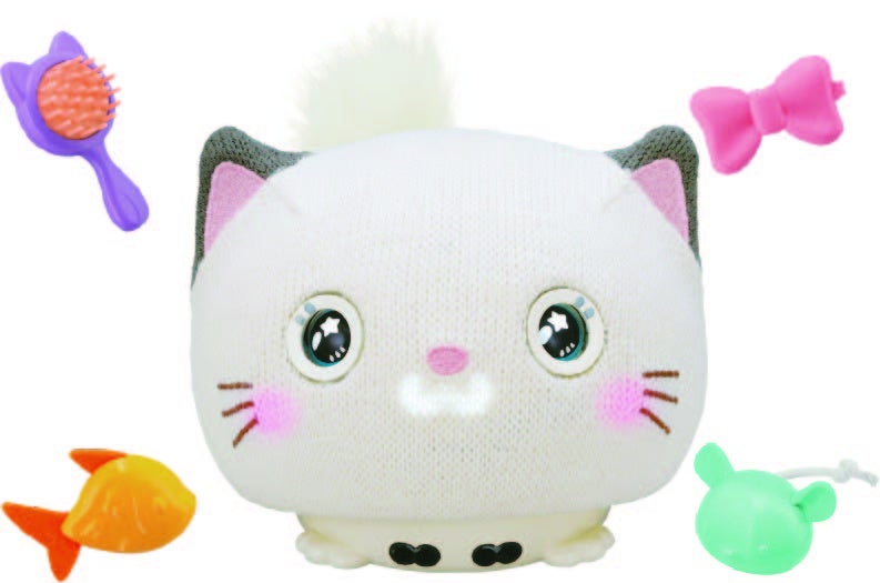 キュートな仕草、たのしい特技がギュッと詰まったインタラクティブペットトイです。目や口元が光り、可愛らしい表情を見せてくれます。また、なでなですると猫らしく気持ち良さそうに甘えるなどします。