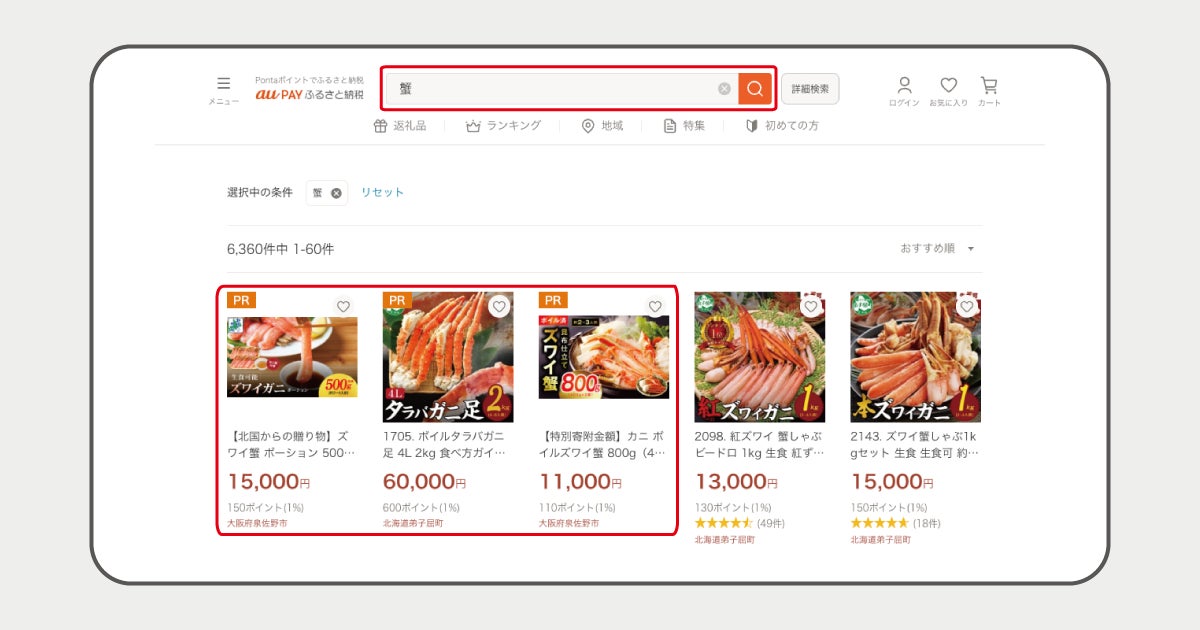 今回、ZETAが提供するリテールメディア広告エンジン「ZETA AD」が『au PAY ふるさと納税』に導入されたことで、ユーザーの検索条件に基づいて広告を掲載することが可能になりました。