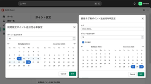 アプリでは、ポイント付与の基本率や小数点以下の扱い、出荷後の付与日数、有効期限などを設定することができる。この機能によって、ブランドの方針に沿ったポイントルールが確立可能だ。