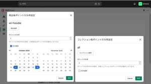 特定の商品やコレクションに対して異なるポイント率を適用し、期間限定でポイント率を変更することもできる。設定によって対象商品やコレクションにポイントを付与しない選択も可能である。