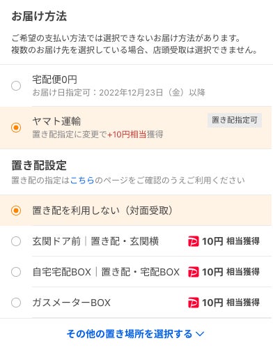 ② 置き配キャンペーン:置き配での受け取りを設定した場合