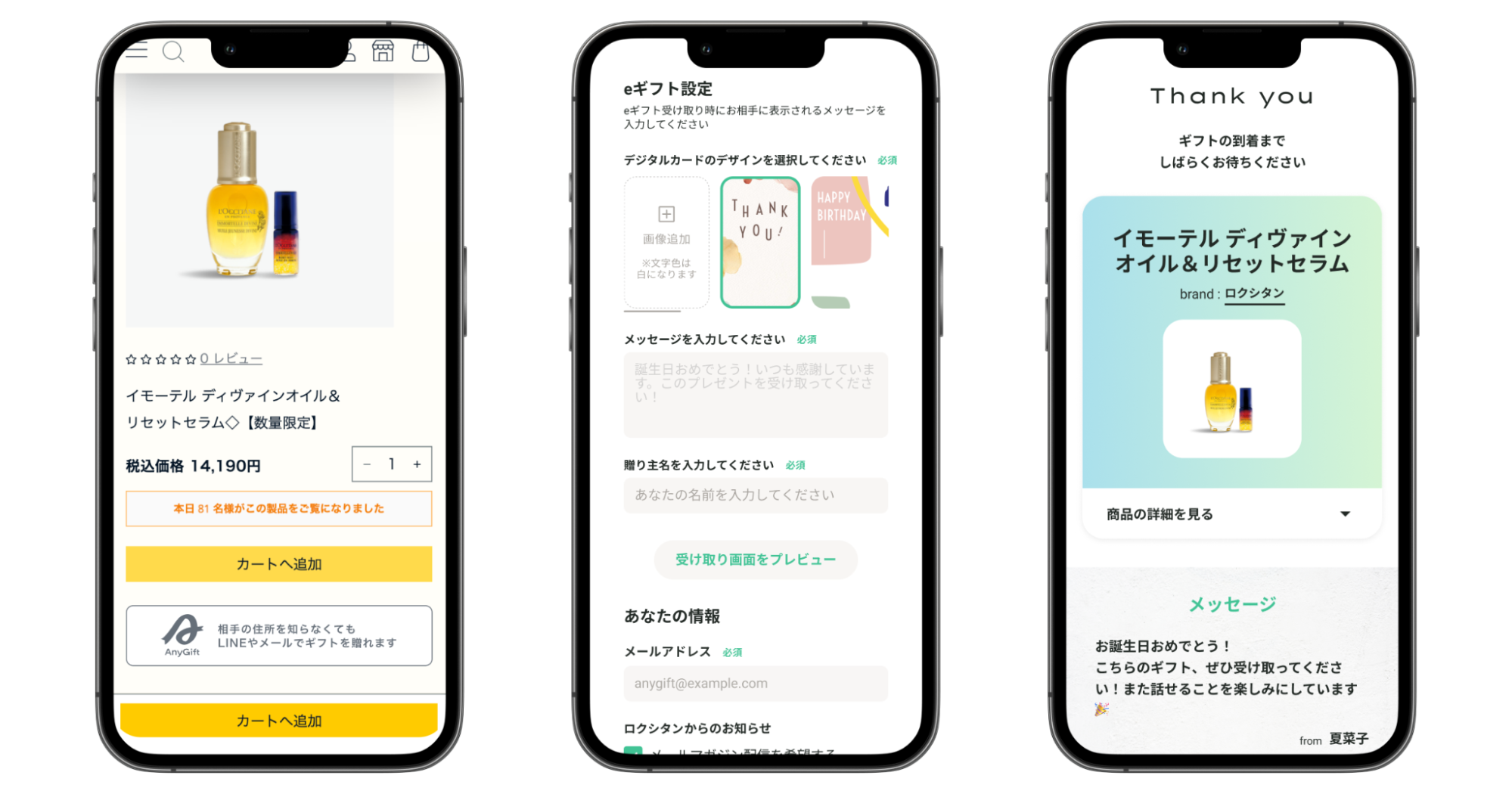 - ロクシタン × AnyGiftのeギフトの特徴