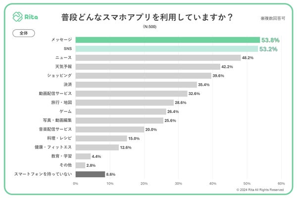 デジタルマーケティング領域で活動するRita株式会社が、全国の20代から60代の男女500人を対象にスマートフォンに関連したアンケート調査を行い、その結果が発表されました。この調査により、各年代別の利用傾向が浮き彫りとなりました。
