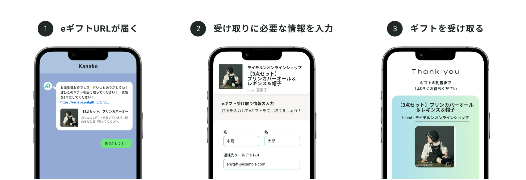 eギフトURLを使って住所を入力するだけで商品がお届けされます