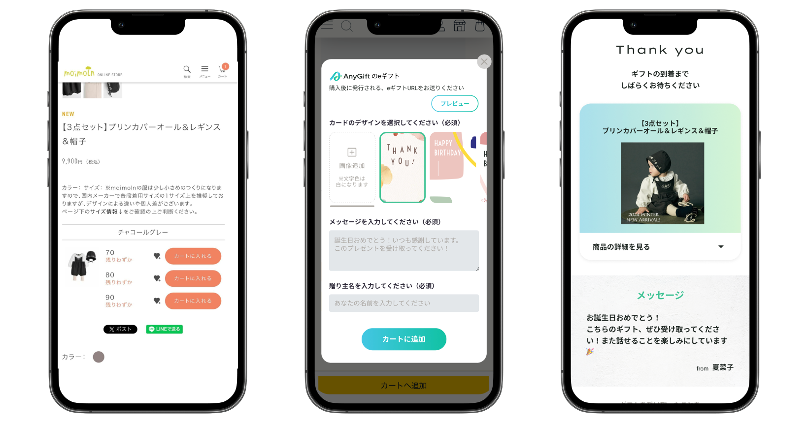 そこで、モイモルンの製品をより気軽にプレゼントとしてお使いいただけるようにするため、AnyGiftの導入を決断しました。