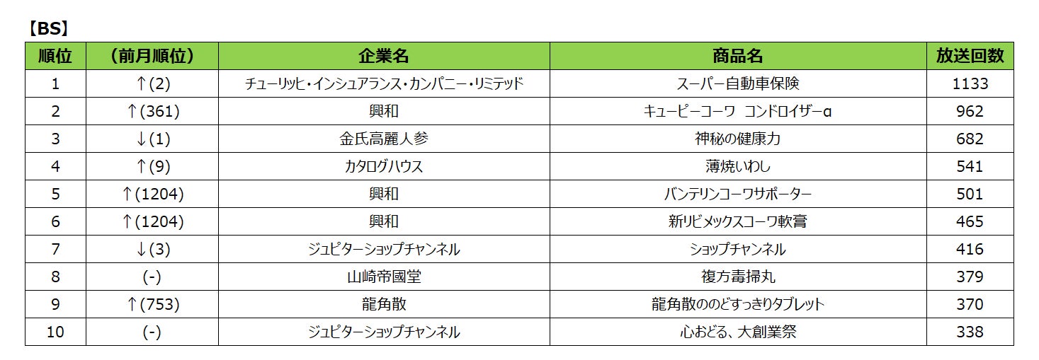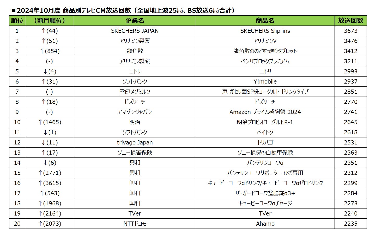 2024年10月度 商品別 テレビCM放送回数ランキング