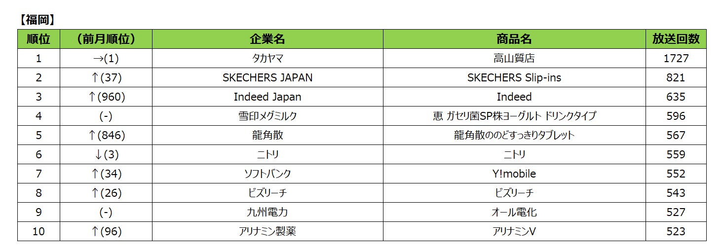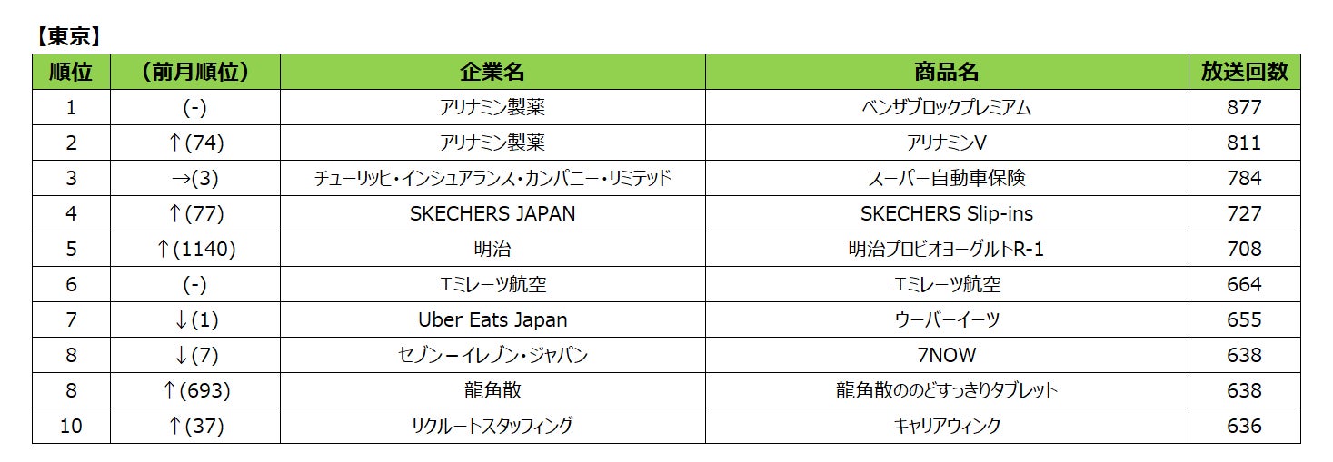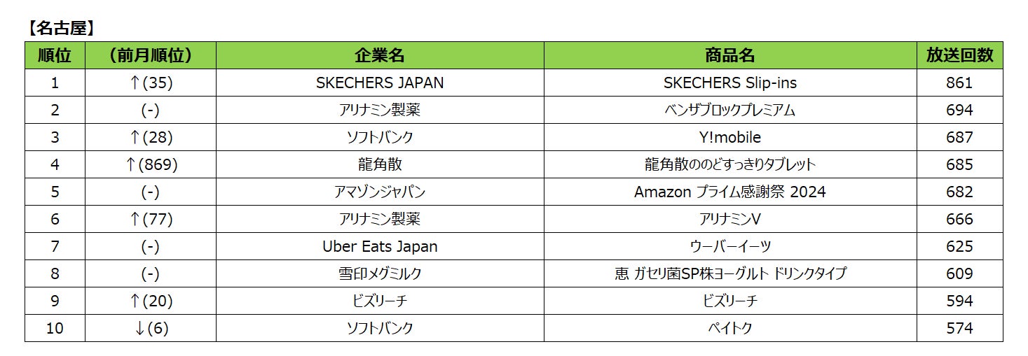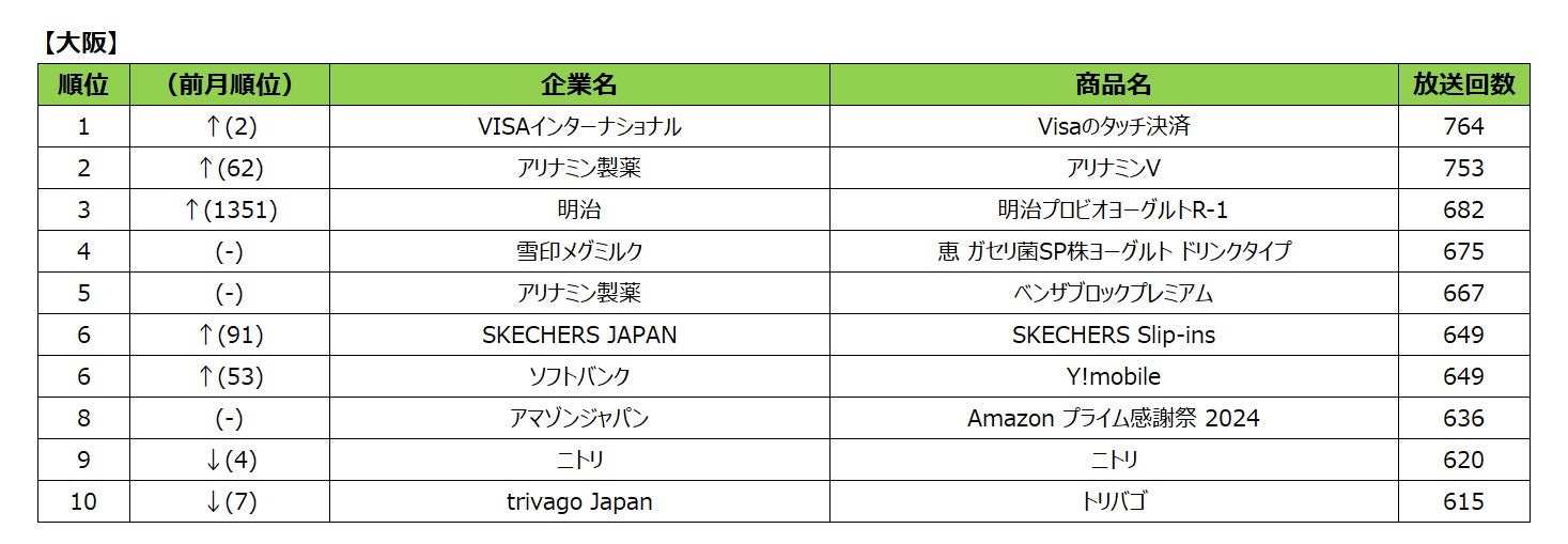 2024年10月度 エリア別 テレビCM放送回数ランキング
