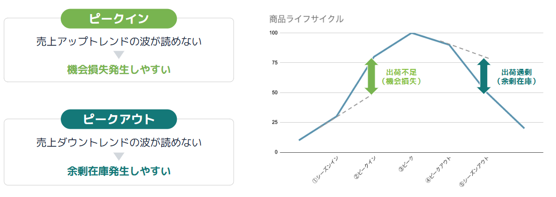 売れるタイミングは一瞬であり、ちょっとした判断の遅れが大きな損失に繋がるため、予測データを活用した「先手」出荷が業績を向上させます。