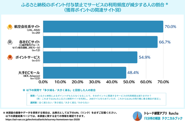 調査結果では、2025年からのポイント付与廃止に対して「ふるさと納税によるポイント獲得がなくなる場合、その利用頻度が減少する」という回答者の多くが航空会社のサービスを利用していることが分かりました。