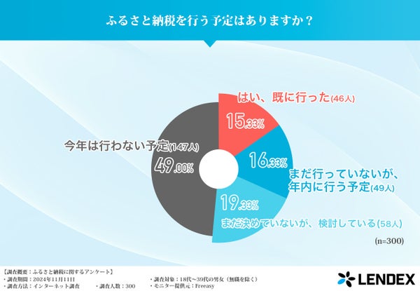 この状況を受けて、株式会社LENDEX(https://lendex.jp)は、18歳から39歳の男女300名を対象に「ふるさと納税に関するアンケート」を実施しました。この調査は、ふるさと納税の利用状況、返礼品の選択基準、および寄付金額の目安を明らかにし、現代の利用者がふるさと納税をどのように活用しているかを探ることを目的としています。