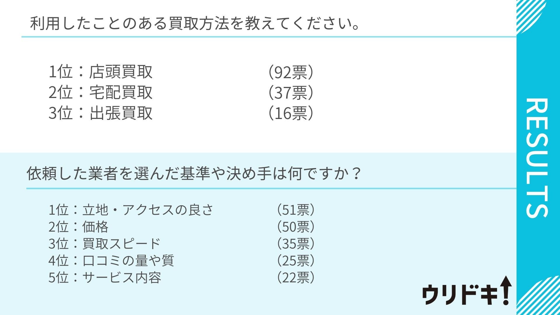 この度、ウリドキ株式会社が行った調査では、100人を対象に買取方法に関するアンケートを実施しました。