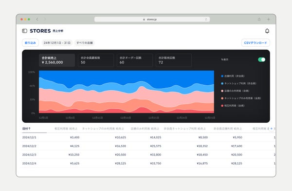 STORES株式会社(以下、STORES)は、ネットショップや店舗の運営を行う企業向けに、「STORES データ分析」という新たなサービスを発表しました。このサービスはネットショップと実店舗の「注文情報」や「商品情報」を統合し、自動的に連携できる機能を持っています。これによりデータ分析が容易になり、売上を期間別、店舗別、商品別などの形式で視覚化することが可能です。さらに、オンラインショップと店舗をまたいだ商品ごとの売上分析や、会員と非会員の売上分析もサポートされ、迅速な事業運営や経営判断を促進します。