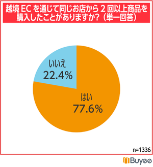 越境ECを通じて同じ店舗から2回以上購入した経験がある人は77.6%。リピート理由には「公式商品」「新商品」「お気に入りの店舗」が挙げられます。