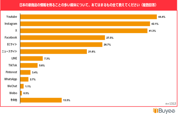 日本の商品情報は主に「YouTube」「Instagram」「X」などのSNSを通じて取得されています。