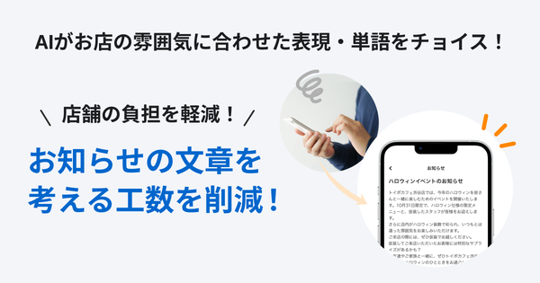 また、「配信内容を考える手間を軽減したい」「店舗の特性や季節に応じた文章を自動生成したい」といったニーズにも応えるべく、トイポは「AIアシスタント」による店舗のお知らせ文の自動作成機能を正式にリリースすることを決定しました。