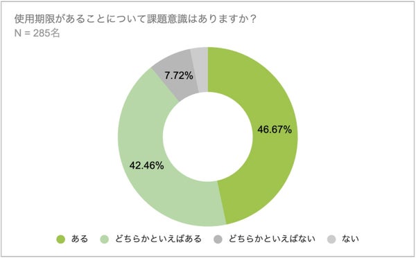 ● 約90%の respondents が使用期限に課題意識を持つ。更新料等のコストや期限の管理が問題