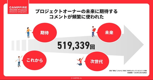 今年、「CAMPFIRE」では前年比28%増のプロジェクトが立ち上がりました。困難に挑む多様なプロジェクトや新たな未来を切り拓くプロジェクト、人々に喜びをもたらすプロジェクトは、社会課題の解決や新しい価値の創造に取り組む人々の想いに多くの共感と支援を受けています。私たちは、日本において最も挑戦が集まるプラットフォームとして、引き続きあらゆるクラウドファンディングを支援し続けます。