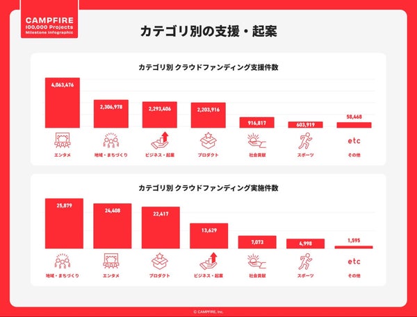 株式会社CAMPFIRE(本社:東京都渋谷区 / 代表取締役:中島真)が運営するクラウドファンディングサービス「CAMPFIRE」において、実施されたクラウドファンディングの数が10万件を超えたとのことです。