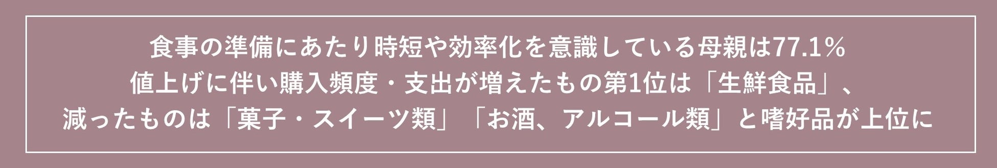 食事準備において時短や効率化を重視する母親の割合は77.1%に達しています。
