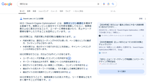 例えば「SEOとは」といったキーワードの検索結果。