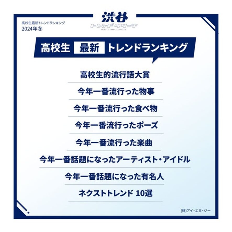 2位 2024年高校生トレンド調査結果発表!流行語や食べ物、人気アーティストは?