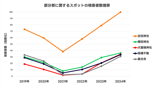 2024年の節分祭における検索者数ランキング:やはり「吉田神社」が圧倒的な人気