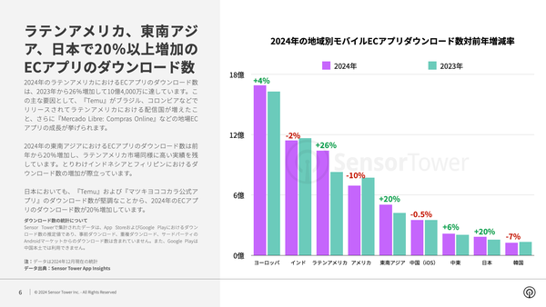 ラテンアメリカ、東南アジア、日本におけるECアプリダウンロード数が20%以上の増加