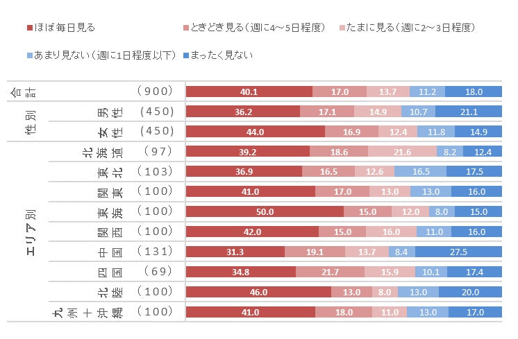 「ほぼ毎日テレビを観る」と回答したZ世代は、東海では50%、北陸では46.0%に上り、テレビを観る10代が多いことが伺えます。