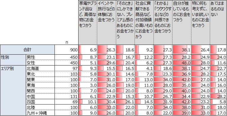好きなものやイベント体験にお金を使う傾向が強く、特にZ世代女子はコト消費において高いスコアを示しました。地域別では北陸のZ世代が33.0%でトップです。