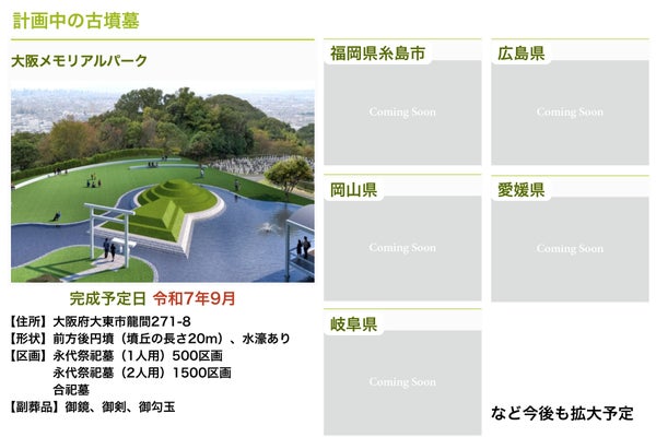 株式会社前方後円墳(代表取締役:竹田恒泰、本社所在地:東京都港区)は、顧客向けポータルサイト『古墳の窓口』において、古墳型のお墓をより手軽にネットショッピングのような感覚で購入できるECサイト機能の強化を進めています。現時点での決済方法は、銀行振込とクレジットカードの2種類から選択でき、希望する古墳墓や区画を選んで購入することが可能です。日本国内では、インターネット上でお墓をクレジットカード決済で購入できるのは当社が初です。