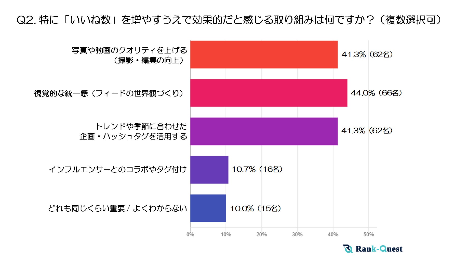 調査結果➁:特に「いいね数」を増加させるために効果的と感じる取り組みは何ですか?