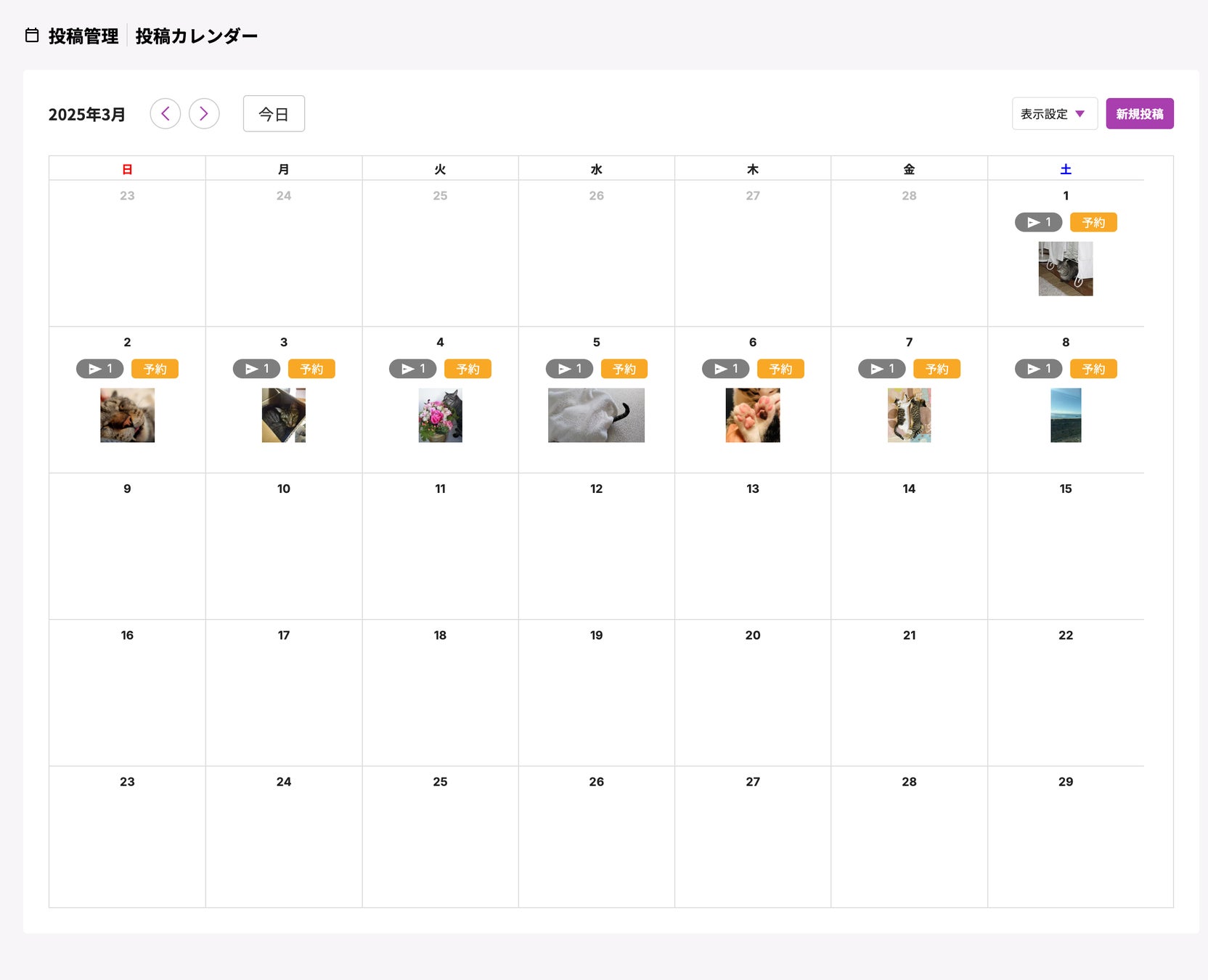 【図2】「SINIS for Instagram」投稿予約一覧画面のイメージ