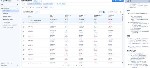 「Urumo BI」は、生成AIを活用し購買データ分析を自動化し、顧客像の解釈が可能な分析ソリューションです。