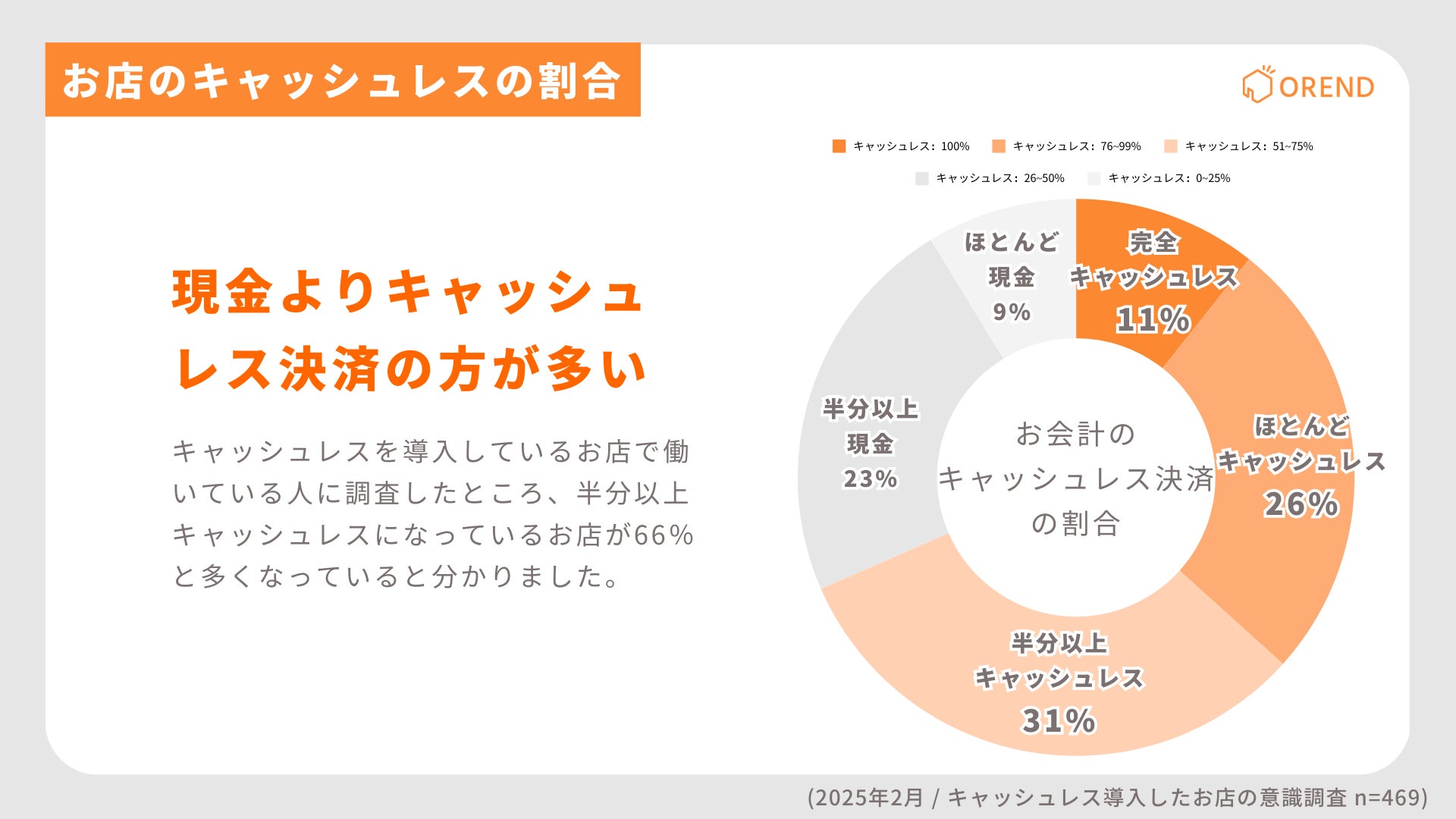 今回の調査中で、回答者の66%がキャッシュレス決済が半数以上を占めると報告しており、さらに<11%は完全キャッシュレスに移行しているとのことです。この結果から、キャッシュレス決済の主流化が明らかになりました。