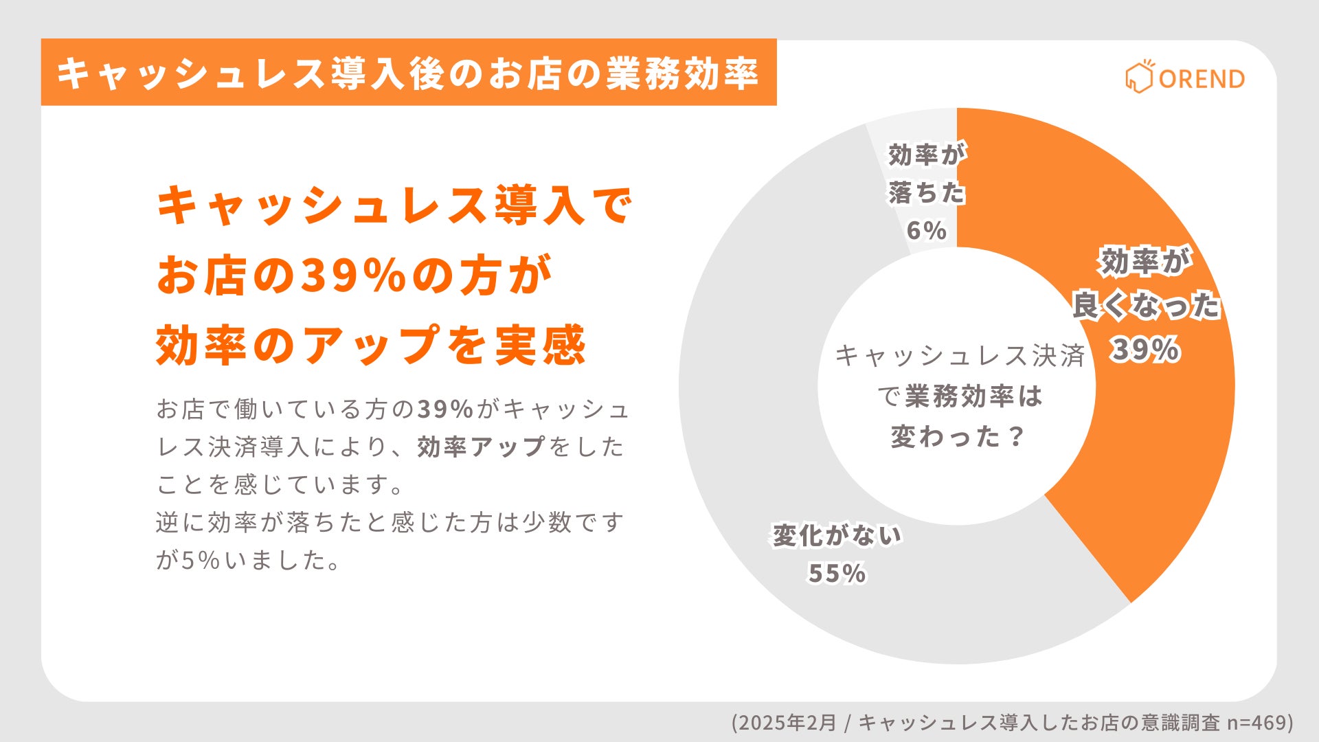 39%の回答者が「業務効率が向上した」と答え、特にレジ業務や現金管理の負担軽減が主な利点として挙げられています。