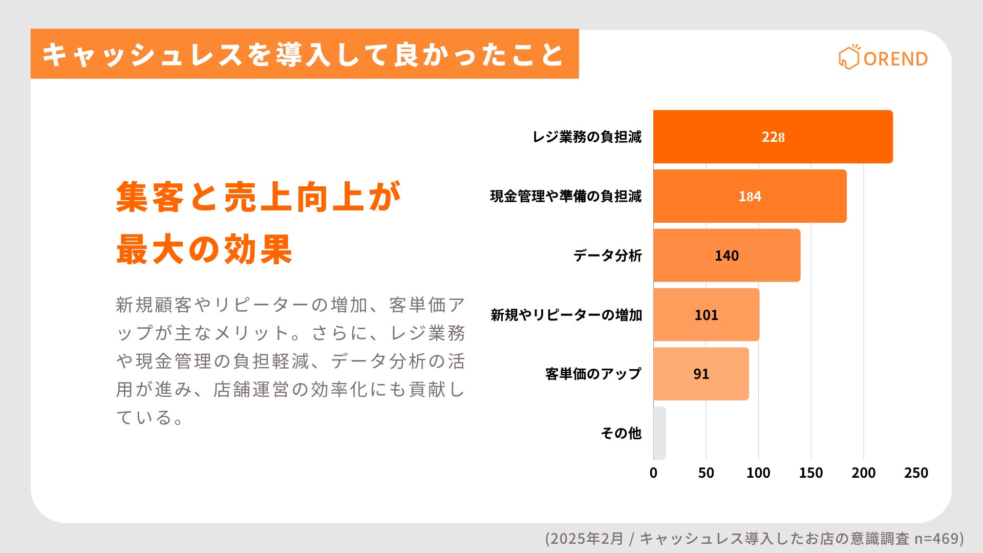 業務効率については、キャッシュレス決済によるインパクトが大きいことが示されました。