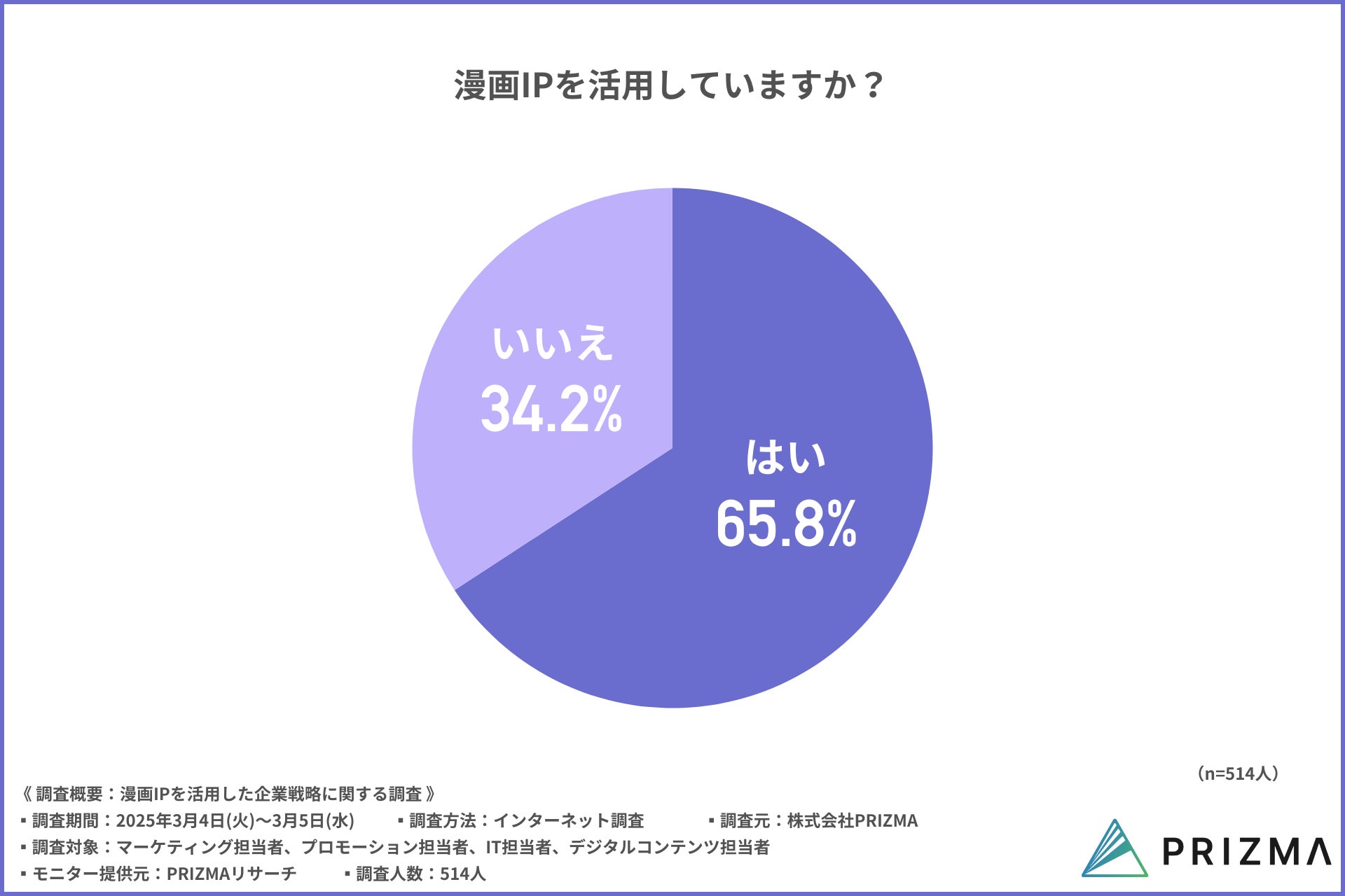 「漫画IPを活用していますか?」という質問への回答では、70%近くの方が「はい(65.8%)」と答えました。