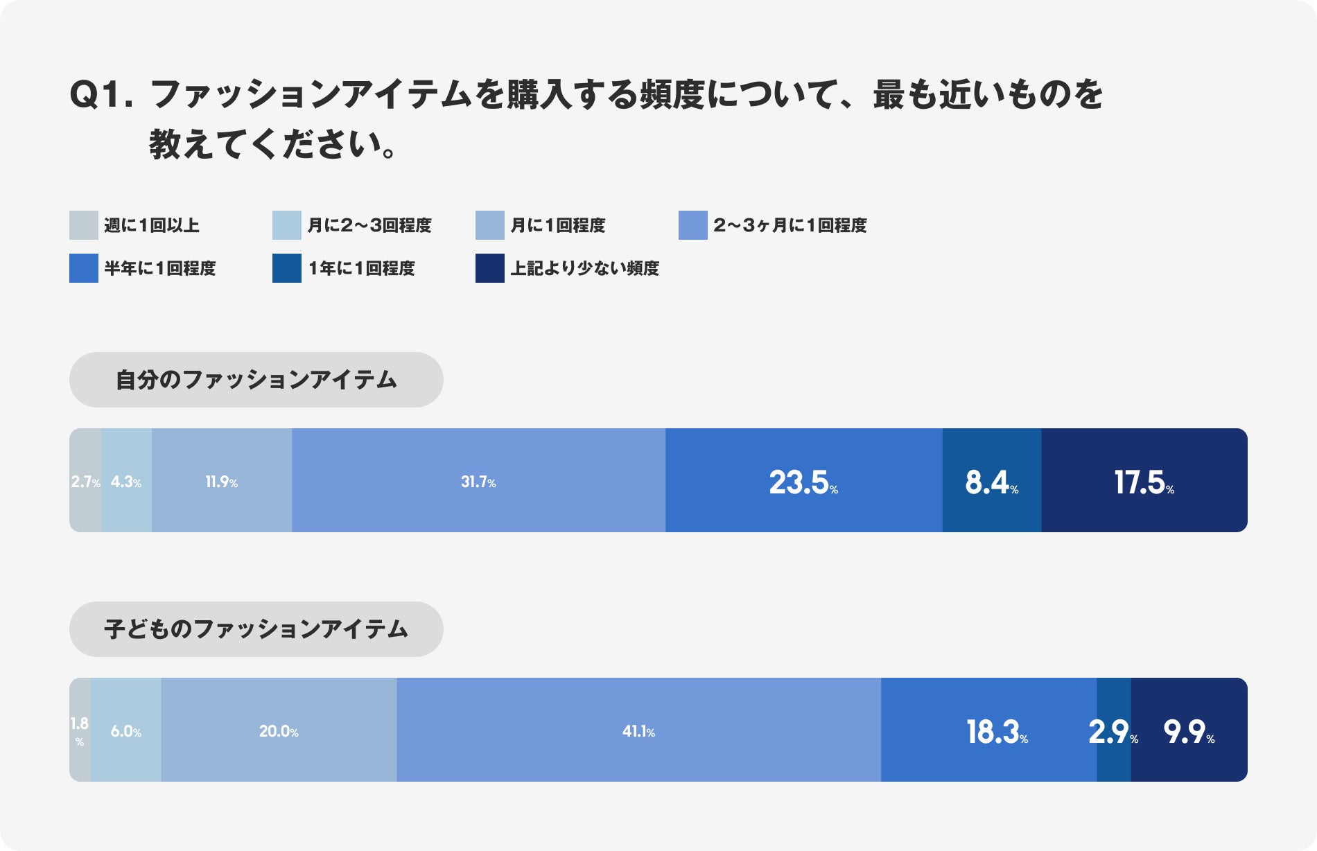 Q1. ファッションアイテムを購入する頻度について、最も近いものを教えてください。