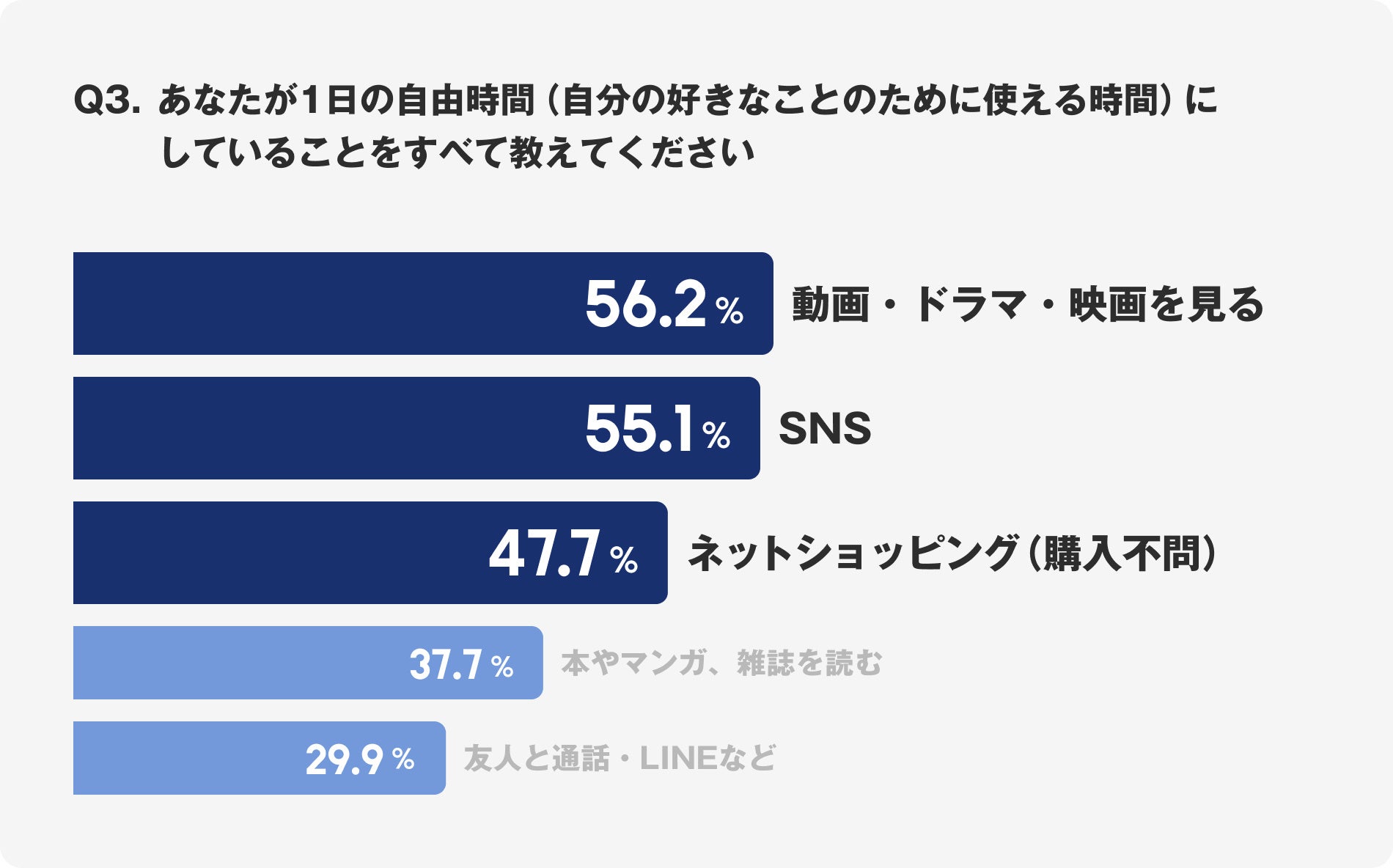Q3. 1日の自由時間にしていることをすべて教えてください。