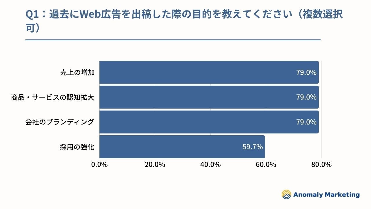 Q1:過去に会社でWeb広告を出稿した際の目的を教えてください(複数選択可)