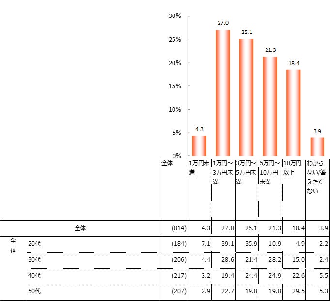 2024年の寄付総額は「1万円から3万円未満」が全体の27.0%を占め、次いで「3万円から5万円未満」が25.1%となっています。