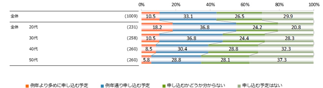 また、今年のふるさと納税でお米を「例年通り申し込む予定」または「申し込む予定はない」との回答がそれぞれ全体の約3割を占める一方、「例年より多く申し込む予定」との回答は10.5%にとどまりました。