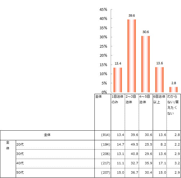 また、寄付した自治体数については「2~3自治体」が39.6%と最も多く、「4~5自治体」が30.6%を占めています。