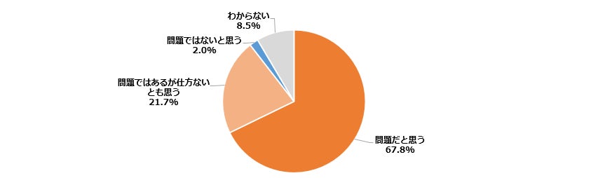 大学新卒者の初任給が30万円を超える企業もある中で、就職氷河期世代の処遇改善が進んでいない現状に対し、「問題だと思う」とする意見が67.8%、また「問題ではあるが仕方ないとも思う」との回答が21.7%に達しました。年代別では、特に40代の「問題だと思う」との回答が高い傾向が見受けられました。