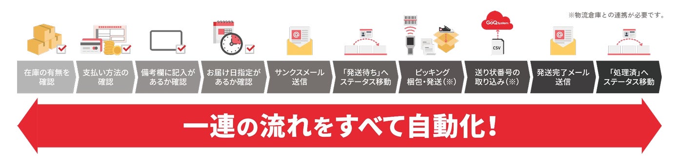 GoQSystemは、通販業務内でのルーチン作業を自動で処理するシステムを提供しています。