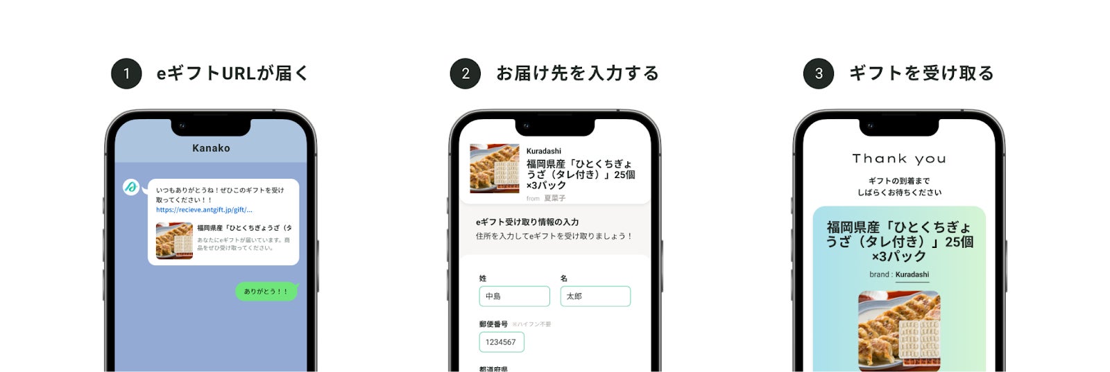 3. eギフトURLからの簡単な住所入力で商品が届く!